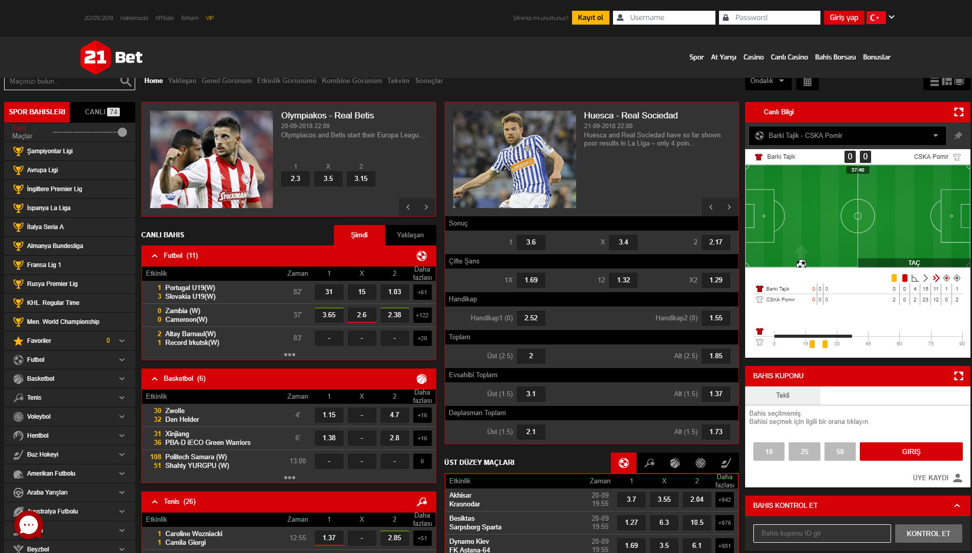 Dünya üzerindeki çoğu ülkede bahis oynama oranı yüksektir. İnsanlar için bazen hobi, bazen eğlence, bazen ise kolay kazanç kaynağı olarak görülen bahis sistemi; çoğu bahis firması tarafından daha cazip hale getirilmesi yönünde çalışmalar yapılmasına sebep olmuştur. Bahis firmaları arasında büyük bir rekabet yaşanmasını asıl nedeni insanların fazla talep göstermesidir. Arz- talep yönünde ilerleyen bir piyasa olan bahis piyasası, özellikle Avrupa ülkelerinde çok fazla rağbet görmektedir. Büyük bir bahis sever kitle olmasından dolayı, gün geçtikçe bahis sitelerinin sayısı da artmaktadır. Bu artan sayı ile bir çok hizmette çeşit de sağlanmaktadır. Farklı siteler tarafından, daha cazip hale gelebilmek adına farklı hizmetler de söz konusu hale gelmiştir. 21Bet adlı bahis sitesi, Avrupa ülkelerinde en hızlı büyüyen interaktif casino sitesi olarak tanınmaktadır. Ağırlığını casino bölümüne verse de, spor bahisleri kategorisi ile de hizmet sunmaktan geri kalmayan bir eğlence platformudur.