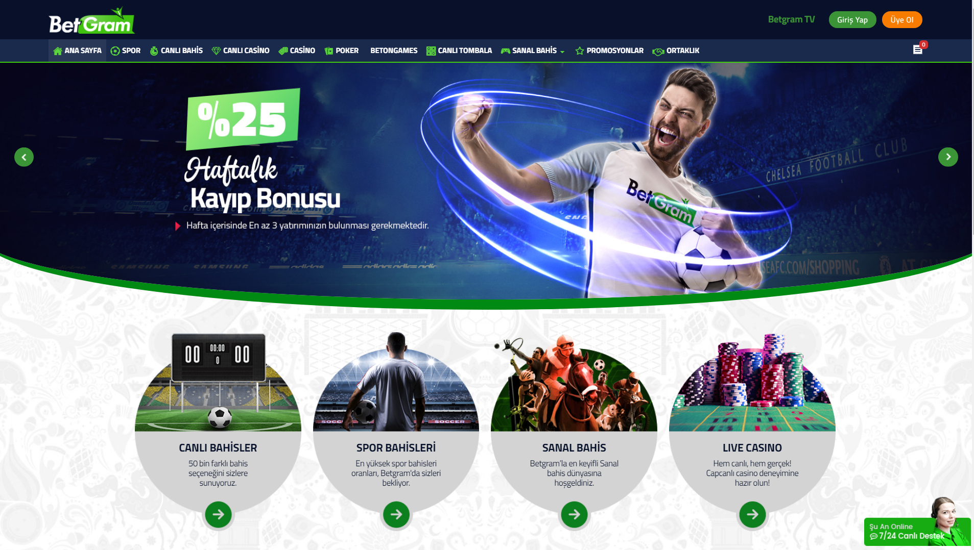 Betgram ayrıca size ilk girişte çok farklı promosyonlar sağlamaktadır. Bu promosyonları promosyonlar kısmına bakıp görebilirsiniz ya da canlı destekle konuşarak öğrenebilirsiniz. %25 Hoş geldin bonusundan yararlanabilirsiniz.