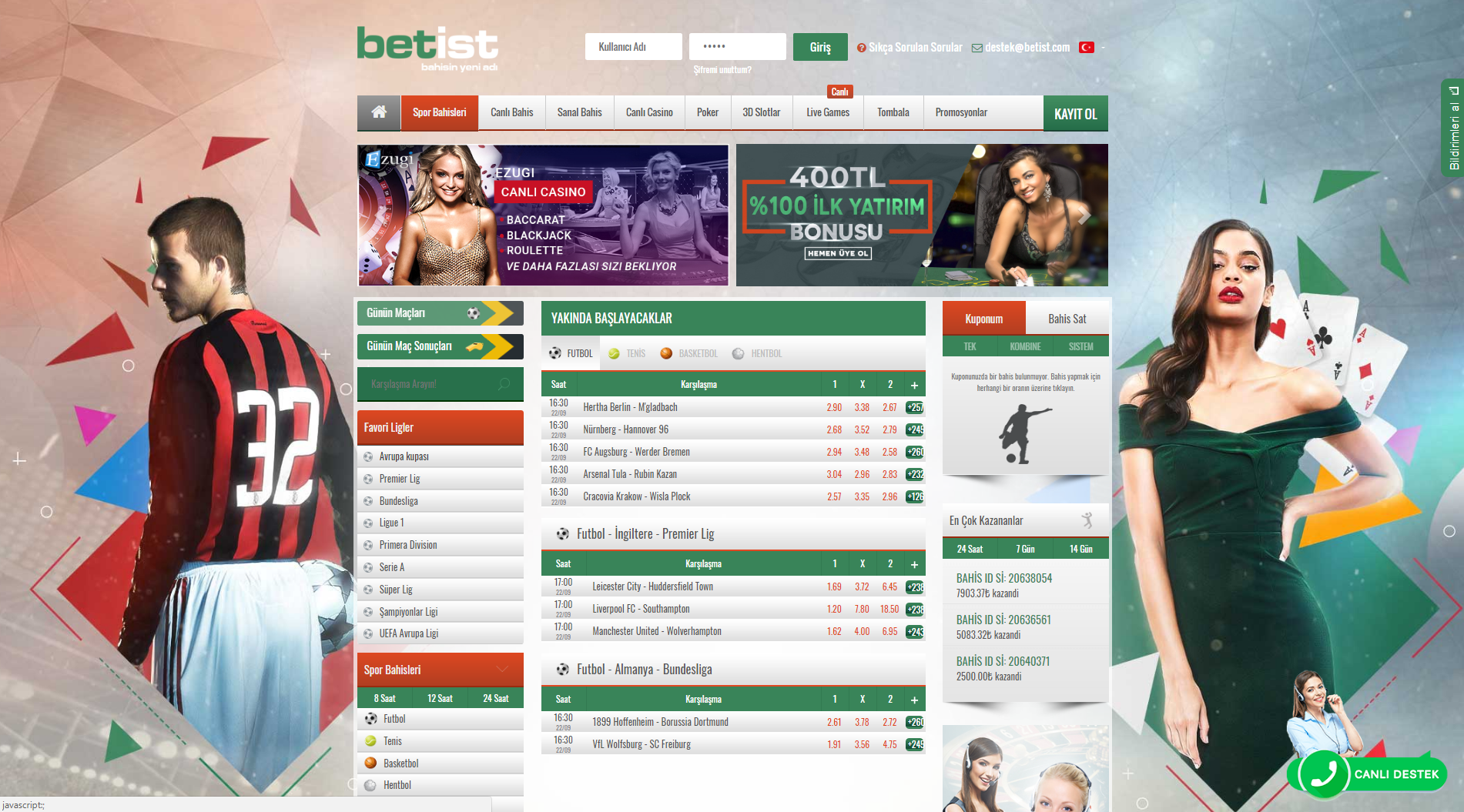 Betist kullanıcılarının beğenisine birçok bahis oyununu sunmaktadır. Bunlardan kısaca bahsedecek olursak spor bahisleri, canlı bahisler, sanal bahis, canlı casino, poker, 3D slotlar, canlı oyunlar ve tombala oyunları bulunmaktadır. Bu oyunlardan istediğinize sitenin üst kısmından ulaşabilirsiniz. Ayrıca site bulundurduğu birçok oyunun yanı sıra birçok promosyonu da beraberinde bulundurmaktadır. 400 TL ilk yatırımlarınıza hoş geldin bonusu kazanabilmeniz mümkün. Ayrıca bitcoin olarak ödeme yapmanız halinde %20 bitcoin skrill bonusu sizleri beklemektedir. Sitenin en üstündeki promosyonlar kısmına tıklayarak birçok promosyonu buradan inceleyebilirsiniz.