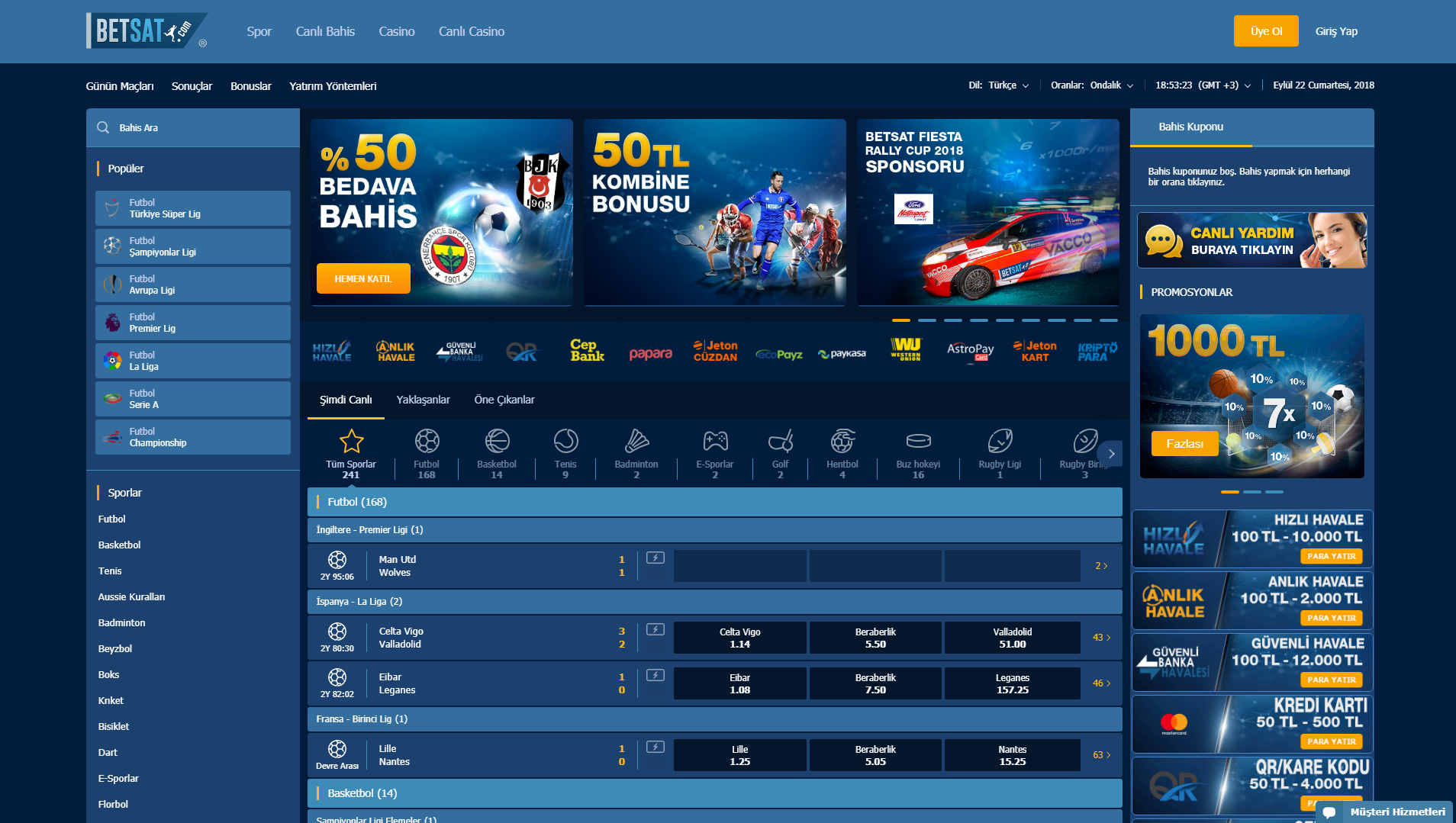 Sitede bahis oynayabileceğiniz birçok yol ve üye olmanız için sizi teşvik eden birçok promosyon bulunmaktadır. Bunları siteye girerek inceleyebilirsiniz. Destekten yardım alarak işlemlerinizi kolayca halledebilirsiniz. Ancak bahsetmemizde fayda var. Sitede spor müsabakaları, canlı bahis, casino vecanlı casino seçeneklerini oynayabilirsiniz. Sitede normalde az kategori olması sizi yanıltmasın bu kategoriler gerçekten içleri dolu ve birçok şey içermektedir. Site özellikle spor müsabakaları konusunda kendisine bir hayli geliştirmiş durumda. Birçok sporm müsabakası ve lig içerisinde yer almaktadır. Bonuslarda ise ilk yatırımda %100 yatırım bonusu ve %50 bedava bahis promosyonlarını görebilirsiniz.