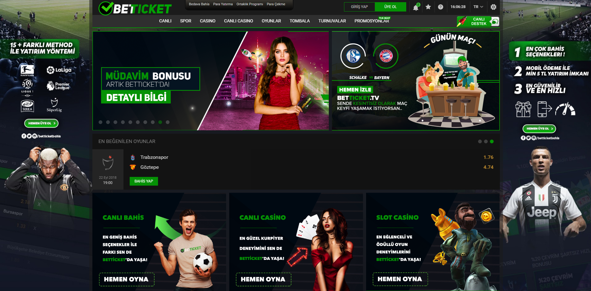 Sitenin olanaklarından yaralanmak, kazanç sağlamak için belirli bir saati beklemeniz gerekmez. Günün her saatinde Hesabınıza para yatırarak sitenin keyfini çıkarabilirsiniz. Para yatırma işlemi için Betticket belli başlı ödeme kanallarını tercih etmiştir. Sitenin tercih etmiş olduğu bütün ödeme kanalları güven sorunu yaşatmadan kullanıcıların yatırımlarını sitelerindeki kişisel hesaplarına aktarmaktadır.
