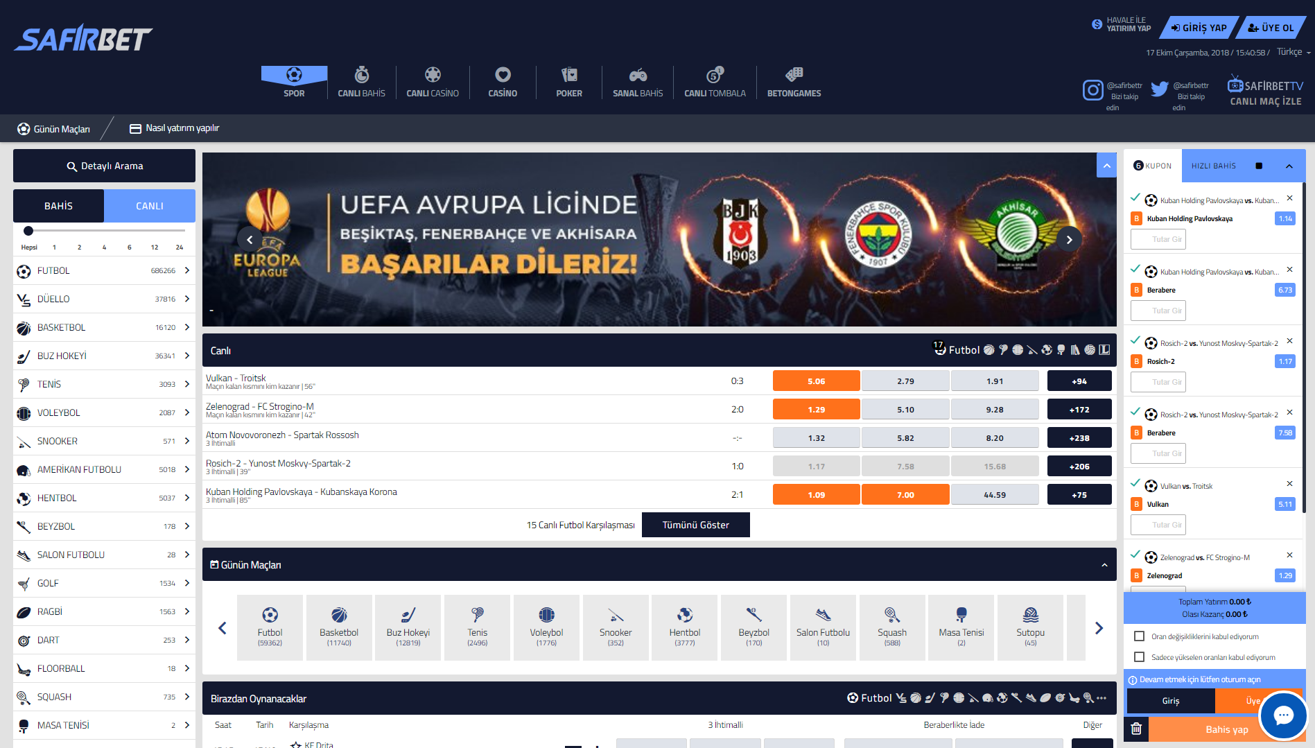 Karadağ kaynaklı bir bahis sitesi olan SafirBet kurulmuş olduğu 2015 yılından itibaren oyun severler arasında çokça tutulan ve ziyaret edilen bir site olmuştur. Bu özelliğini verdiği güven ve rahat bir bahis yapma altyapısından alan site oyuncularına sunduğu birbirinden farklı bahis seçenekleriyle de dikkat çekmektedir.
