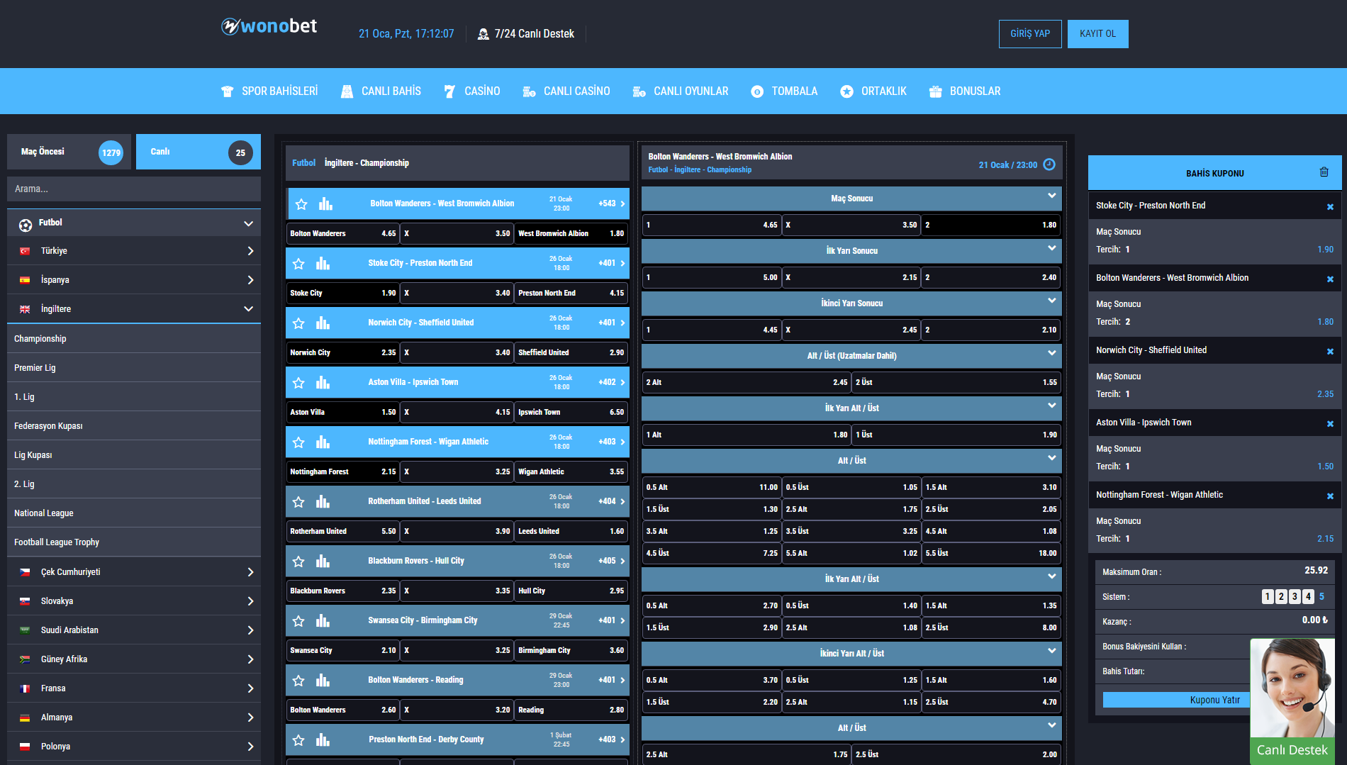 • Canlı bahis