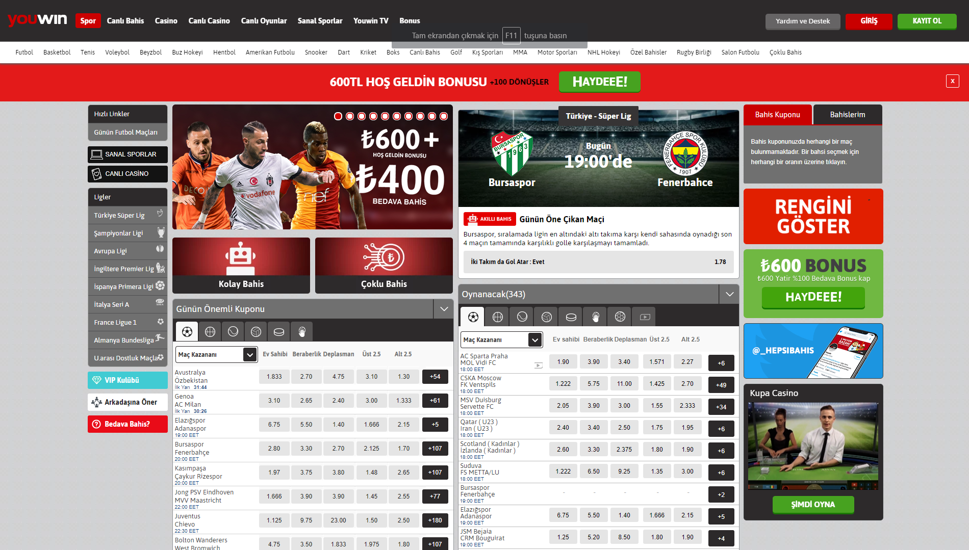 - 250 TL sanal spor kayıp bonusu